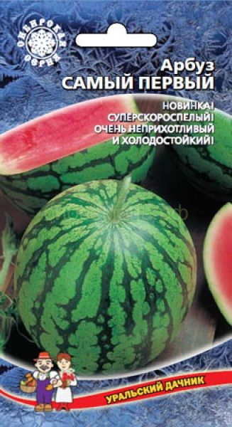 Суперскороспелый, очень неприхотливый и холодостойкий сорт, с дружной отдачей урожая. Плоды округлые, гладкие, массой 2,5-4кг. Мякоть ярко-красная, очень сахаристая, нежная, с ярко выраженным арбузным ароматом, отличных вкусовых качеств, с небольшими чёрными семенами. Благодаря своей уникальной скороспелости плоды успевают созреть даже при безрассадном способе выращивания.