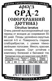 Ультраскороспелый сорт, период от полных всходов до начала плодоношения 55-60 дней. Плод удлиненно-округлый, массой 4-5 кг, поверхность гладкая, слаборебристая, с узкими темно-зелеными полосами на более светлом фоне. Мякоть красная, сочная, сладкая, ароматная