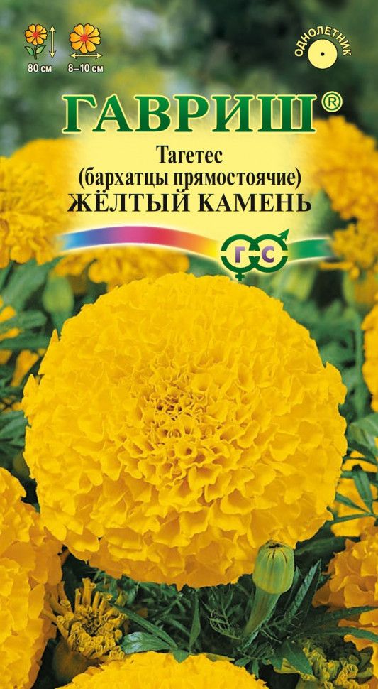 Однолетнее растение семейства Сложноцветные. Высотой до 80 см, сильно ветвистое от основания, боковые побеги отклоненные. Соцветия — корзинки до 15 см в диаметре, густомахровые, шаровидные, золотисто-желтой окраски. В открытый грунт можно высевать в конце мая — начале июня. Всходы появляются на 5-10 день.
