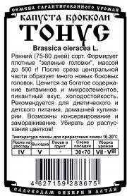 Самый ценный по питательности вид капусты. Ранний, высокоурожайный сорт. Формирует плотные "зеленые головки", массой до 500 г! После среза центральной части образует много новых боковых головок. Ценится за богатое содержание витаминов и микроэлементов, пикантный вкус, холодостойкость. Рекомендуется для диетического и детского питания, домашней кулинарии. Возможны консервирование и замораживание. Убирать до распускания цветков!