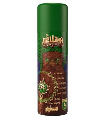 Леший защита от укусов 7в1 – высокоэффективное средство репеллентное в виде аэрозоля для борьбы с кровососущими насекомыми. Применяется для защиты людей от укусов кровососущих насекомых при нанесении на открытые части тела, одежду и другие изделия из ткани.