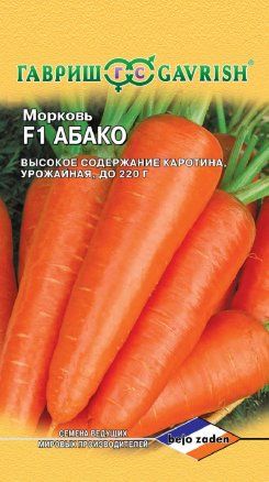Раннеспелый (80-90 дней от всходов до технической спелости) гибрид. Розетка листьев полураскидистая. Корнеплоды темно-оранжевые, конические с тупым кончиком, средней длины, массой 105-220 г. Обладают отличным вкусом. Используют в свежем виде, для консервирования, замораживания и зимнего хранения. Посев семян в грунт производят в конце апреля – начале мая на глубину 1 см, расстояние между рядками 15 см. Подросшие всходы прореживают, оставляя между растениями по 5-7 см. Урожайность 4-6 кг/м2.