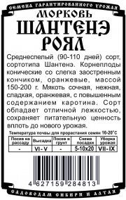 Среднеспелый (90-110 дней) сорт, сортотипа Шантенэ. Корнеплоды конические со слегка заостренным кончиком, оранжевые, массой 150-200г. Мякоть сочная, нежная, сладкая, оранжевая, с повышенным содержанием каротина. Сорт обладает отличной лежкостью, сохраняет питательную ценность вплоть до нового урожая.