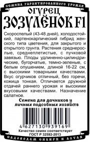 Скороспелый (43-48 дней), холодостойкий, партенокарпический гибрид женского типа цветения, для закрытого и открытого грунта. Растения среднерослые, среднеплетистые, с пучковой завязью. Плоды удлиненно-цилиндрические, бугорчатые, темно-зеленые, с белым опушением, длиной 16-22 см, с высокими товарными качествами. Вкус огурчиков отличный, без горечи, кожица тонкая. Отличается дружной отдачей раннего урожая и высокими вкусовыми качествами. Назначение салатное.
