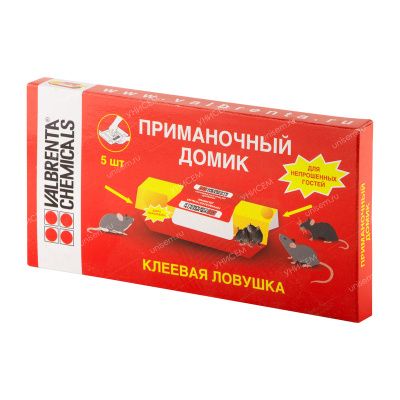 Клеелов приманочный домик – высокоэффективное инсектицидное и родентицидное средство в виде клеевой ловушки для механического отлова грызунов (домовых мышей, молодых крыс, полевок). Применяется в помещениях, в том числе в таких местах, где применение ядохимикатов нежелательно. Ловушка обладает высокой уловистостью и длительным фиксирующим действием в отношении грызунов, абсолютно безвредна для человека и домашних животных.