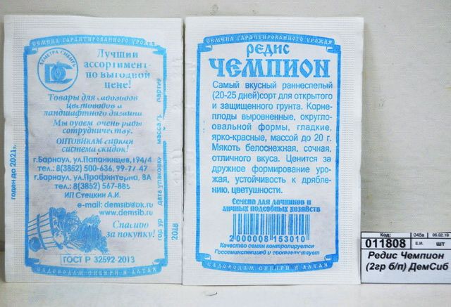 Раннеспелый сорт (20-25 дней) для открытого и защищенного грунта. Корнеплоды выровненные, округло-овальные, гладкие, малиново-красные, массой до 30 г. Мякоть белая, нежная, сочная, отличного вкуса. Отличается ранним и быстрым формированием корнеплодов, устойчивостью к цветушности.