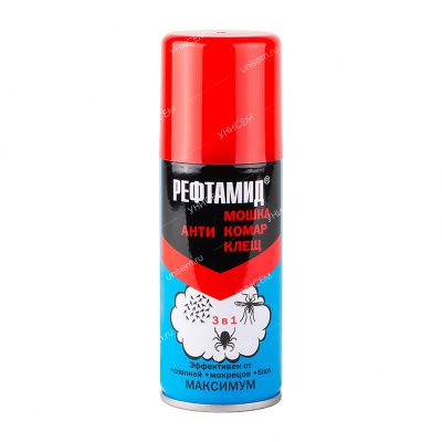 Средство акарицидно-репеллентное в виде аэрозоли. Применяется для защиты взрослых людей от укусов кровососущих насекомых при нанесении на открытые части тела, одежду и другие изделия из ткани. Препарат отличается мгновенным эффектом и длительным действием (до 4 часов защиты).