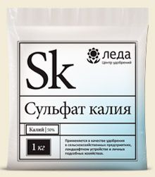Сульфат калия – высококонцентрированное бесхлорное калийное удобрение, которое содержит калий (50%). Применяется для подкормки культур, чувствительных к хлору: огурец, перец, баклажан, картофель, морковь и др. Препарат положительно влияет на урожай семейства крестоцветных (капуста, брюква, турнепс и др.) и бобовых, потребляющих много серы, калий повышает содержание сахара и витаминов в выращенной продукции.