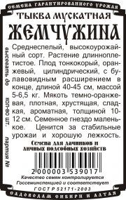Среднеспелый, высокоурожайный сорт. Растение длинноплетистое. Плод тонкокорый, оранжевый, цилиндрический, с булавовидным расширением в конце, длиной 40-45 см, массой 5-6,5 кг. Мякоть темно-оранжевая, плотная, хрустящая, сладкая, ароматная, толщиной 10-12 см. Семенное гнездо маленькое. Ценится за стабильные урожаи и хорошую лежкость.