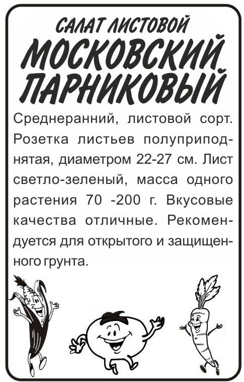 Среднеранний, листовой сорт. Розетка листьев полуприподнятая, диаметром 22-27 см. Лист светло-зеленый, масса одного растения 70 -200 г. Вкусовые качества отличные. Рекомендуется для открытого и защищенного грунта. Холодостойкое растение. Влаголюбив. Предпочитает плодородные почвы с нейтральной реакцией. Грядка должна быть на солнечном или слегка притененном месте. Лучшие предшественники — капуста, картофель, томат, огурец, корнеплоды. Салат можно выращивать как в открытом, так и защищенном грунте. В открытый грунт семена высевают в самые ранние сроки, как только позволит почва. Дальнейшие посевы проводят с интервалом в 15 дней. Сбор урожая обычно проводят утром, выдергивая растения с корнем. Используют в пищу в свежем виде, как для приготовления салатов, так и для оформления закусок и вторых блюд.